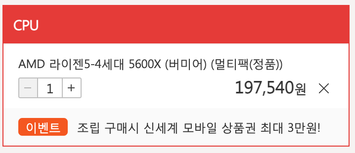 CPU는 인텔 13400이 좋아보이지만 가성비로 AMD 5600X를 선택했다.