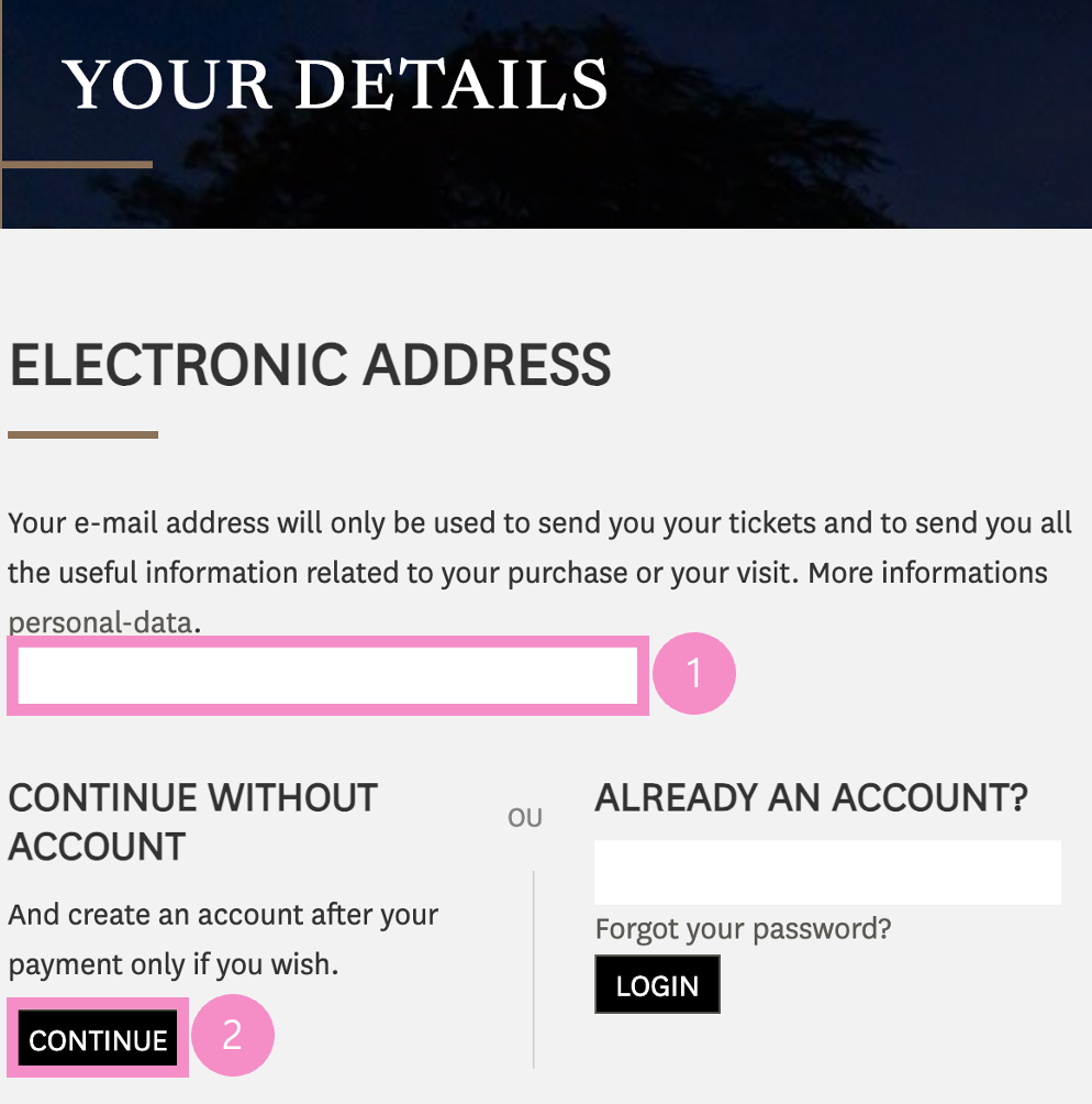 계정이 없어도 입력한 이메일 주소로 티켓을 받을 수 있다.