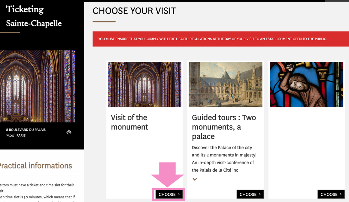 5. Visit of the monument에서 CHOOSE 클릭